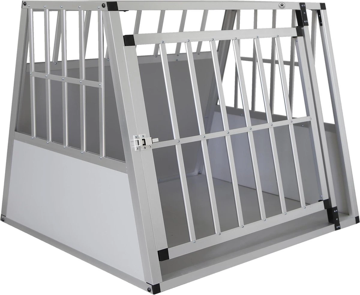 Zilveren aluminium Autobenche 81x91x74 cm met 1 deur en hierdoor geschikt voor middelgrote tot grote honden. Afgeschuind aan voor en achterzijde voor efficiëntere ruimte benutting in de auto. Vervoer uzelf en uw hond of kat veilig in de auto in deze autobench Een bench laat uw hond toe de omgeving in de gaten te houden zonder de bestuurder te storen.