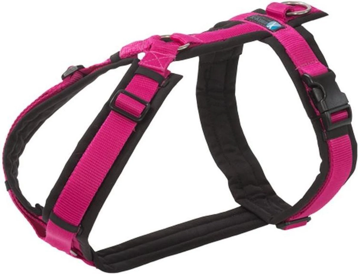 Het harnas is ontworpen om zich ergonomisch aan het lichaam van de hond aan te passen, waardoor een optimale trekverdeling wordt gecreëerd, die de rug van uw hond beschermt. Voorwaarde hiervoor is dat de riem alleen aan de aangewezen achterste ring is gehaakt.