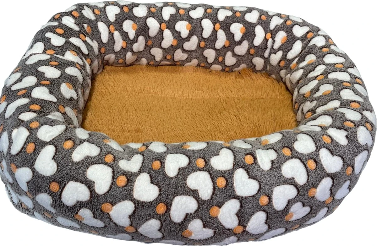 Fluffy Hondenmand – Bruin Met Witte Hartjes – M