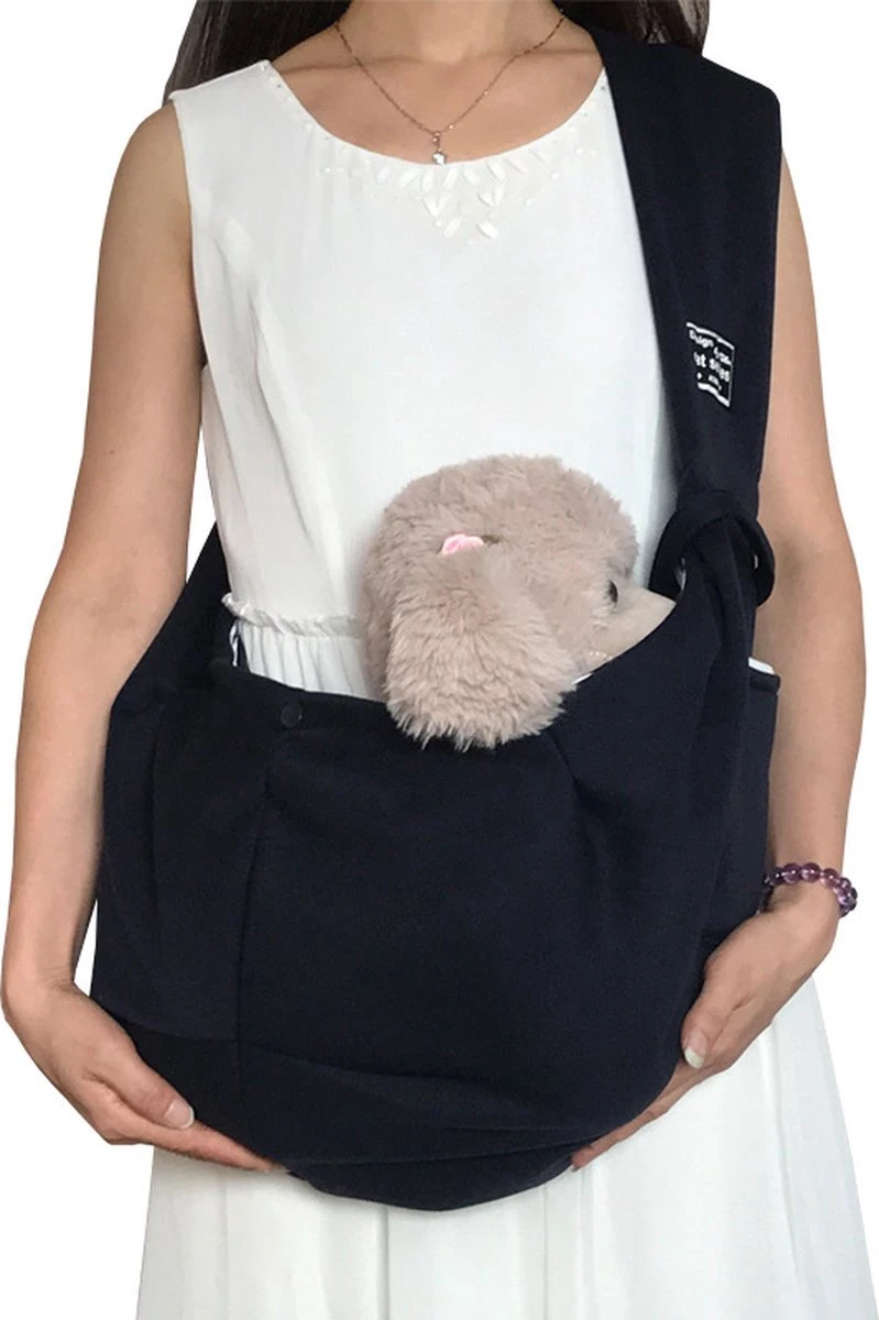 Omkeerbaar: Omkeerbaar ontwerp voorl liefhebbers van huisdieren zullen dol zijn op deze omkeerbare sling-draagtas. Er is een vak aan de voorkant en het kan je helpen om je telefoon, sleutels, kaarten, poepzakjes, je portemonnee of wat lekkers op te bergen.