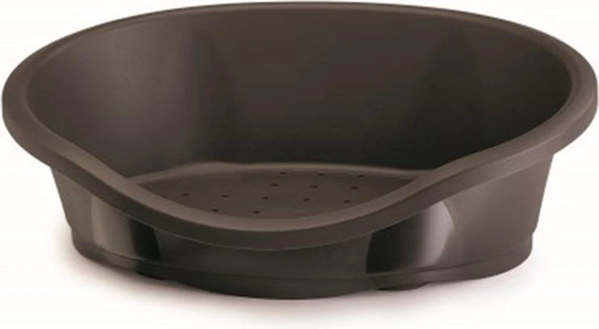 De Imac Mand Dido Antraciet 50 x 38 x 20,5 cm is een robuuste ovalen hondenmand met ventilatiegaten en opstaande rand, van stevig kunststof. De kunststof hondenmand Dido is een stevige mand met opstaande rand. Deze rand biedt jouw hond meer steun en zo de gelegenheid er desgewenst tegenaan te liggen. De mand is voorzien van gaten aan de onderzijde, waardoor er voldoende ventilatie ontstaat. De anti-slip pootjes zorgen ervoor dat de mand bij het in- en uitstappen op zijn plek blijft staan. Te gebruiken met en zonder kussen of hondendeken.