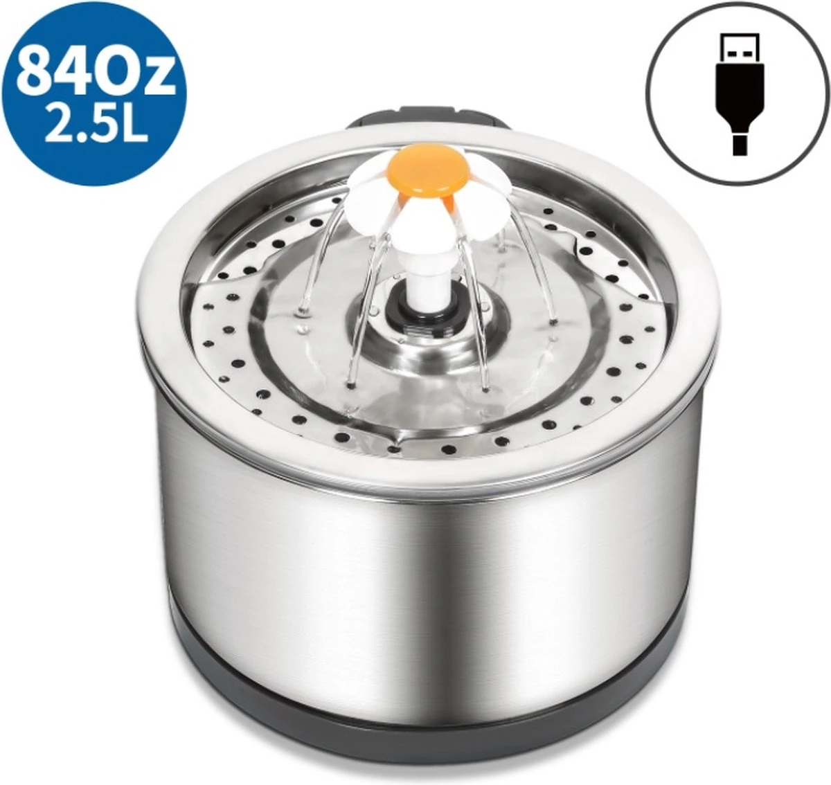 Dit unieke en vernieuwde volledig RVS model is de beste in zijn soort en zorgt ook bij donker dat je geliefde huisdier het water in de nacht makkelijk kan vinden en de drinkfontein ook niet omstoot. Tevens kun je de waterstand makkelijker controleren.