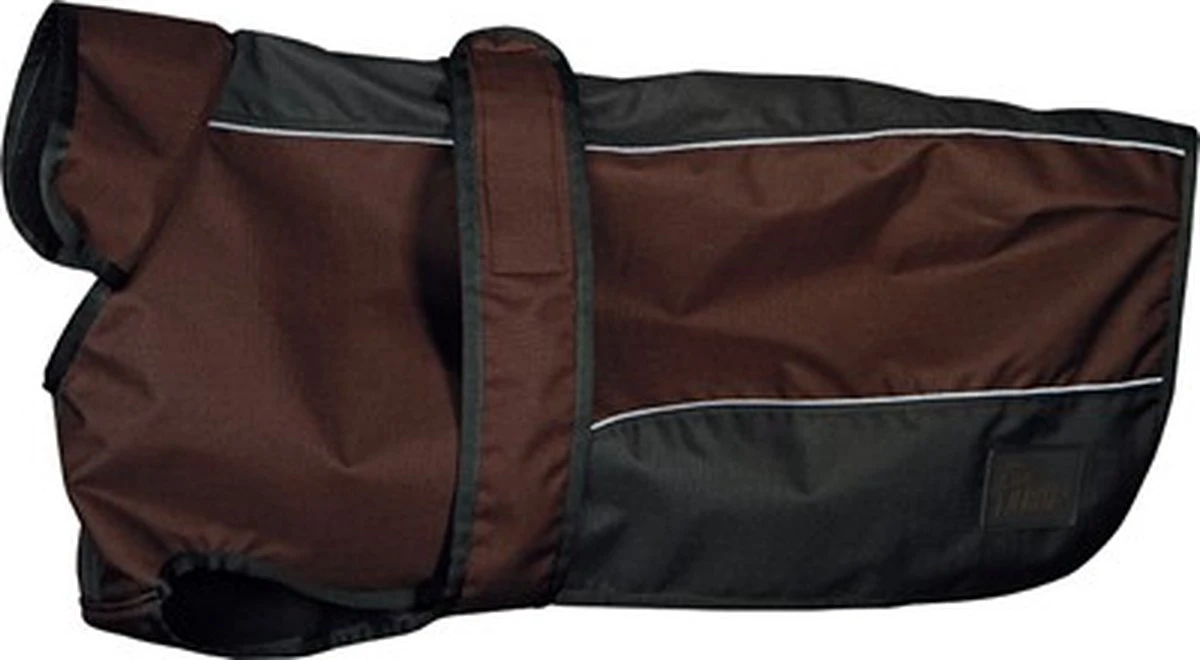 600D hondendeken in twee kleuren en een sportieve piping, waterdicht en ademend en fleece gevoerd.