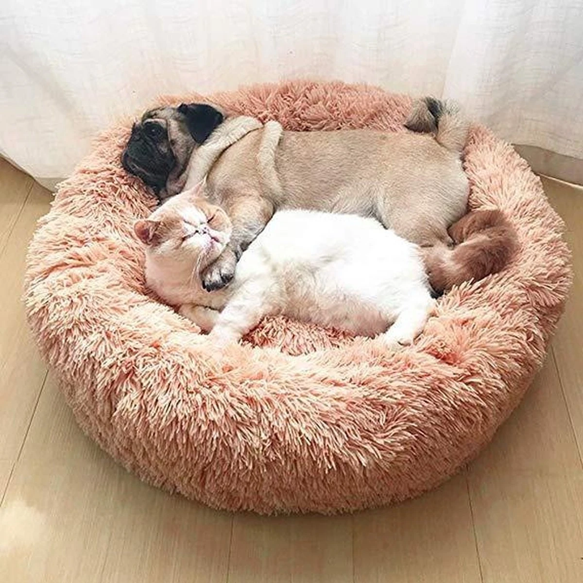 Topmast Donut mand – honden en katten slaapbed – 60 cm – Camel – pluche hondenmand
